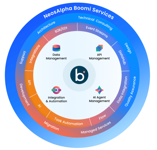 Explore Our Boomi Managed ServicesBoomi’s suite of solutions empowers businesses to streamline their workflows, secure data exchange, and maintain high data quality.